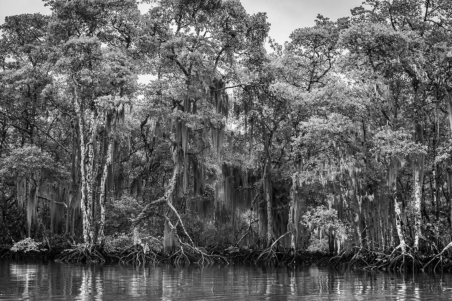 Neste registro em preto e branco, onde as raízes do mangue se entrelaçam em uma coreografia de sombras e reflexos, vemos a materialização desse pensamento. O preto e branco despe a paisagem de distrações cromáticas para revelar a sua ossatura, a sua alma geométrica. É uma imagem que exige do espectador o mesmo que exigiu de mim: tempo.